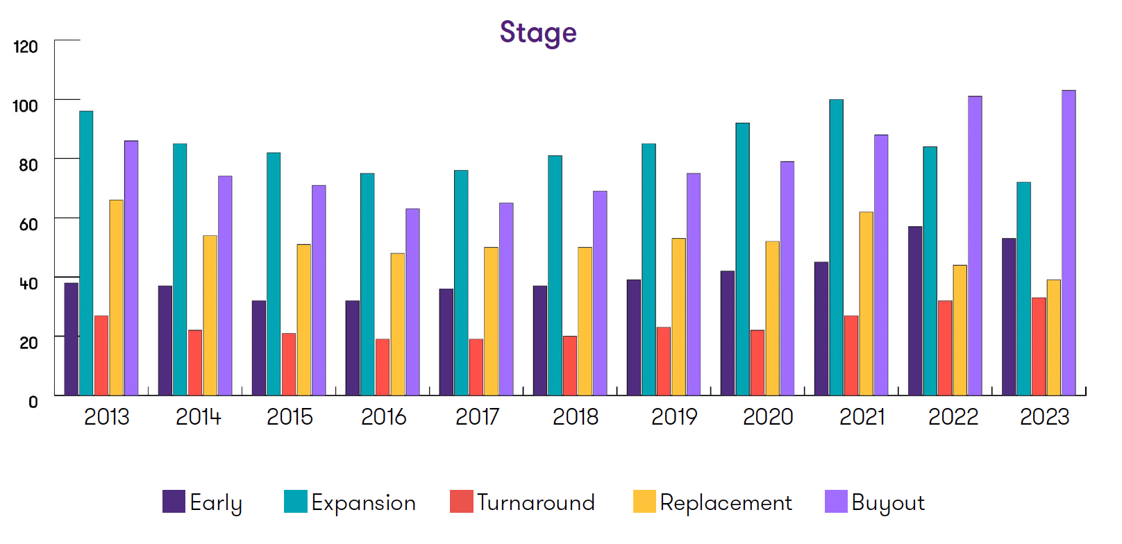 Until 2021, investments were more focused on Expansion and Buy out. In recent years, however, many operators have decided to focus almost exclusively on buyout-type investment activities.