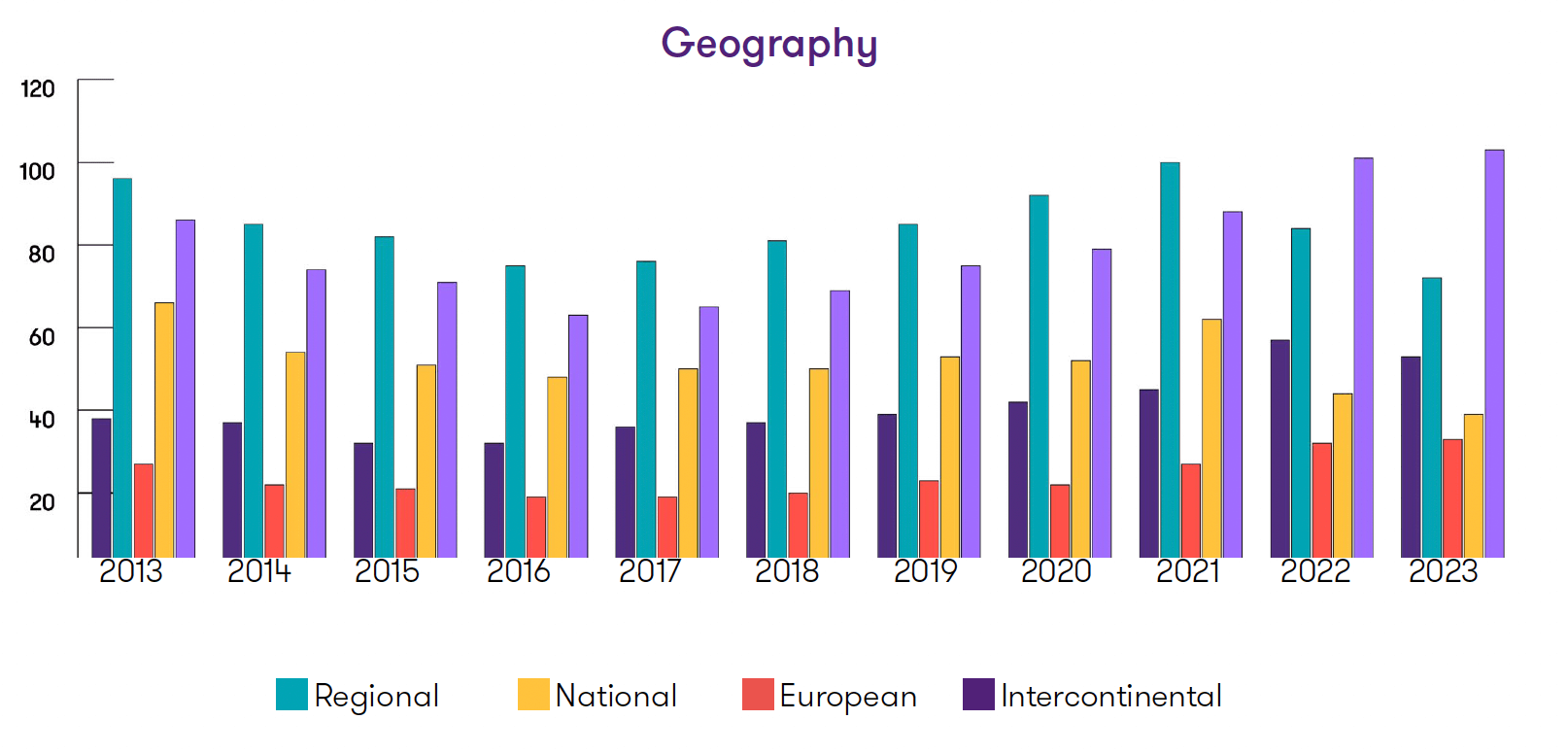 In the investment landscape, the domestic sector continues to be preferred by a significant number of operators, which choose it as the heart of their investment strategies, thanks to their experience and in-depth knowledge of the Italian economic system. Numerous funds invest on projects aimed at the development of Italian SMEs in all stages of growth. However, over the years, there has been a constant decrease in the number of operators active at a regional level. This decreasing trend reflects a substantial transformation in the sector's investment strategies. Regional funds are highly specialized in investing in small companies. Therefore, the decreasing trend over the years is a consequence of the decrease in Small-type funds. In fact, the cost of small investments at regional level in small businesses is not optimal, as it is comparable to the cost of a larger investment.