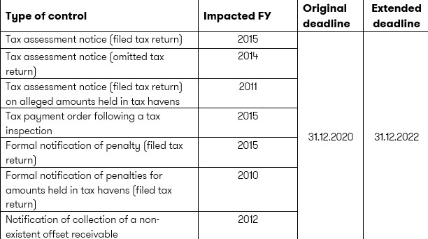 A further consideration is also needed for those assessment terms, which although expiring on 31.12.2020, have now been postponed to the beginning of 2020 further to specific provisions of law.