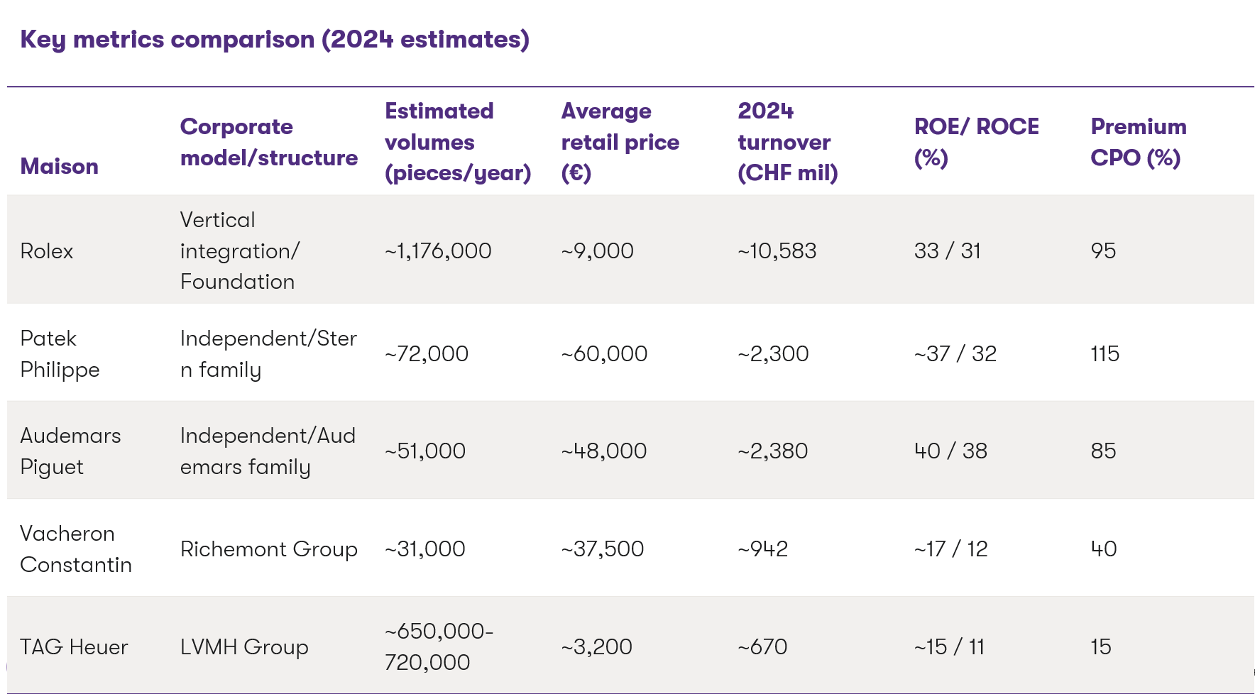 The analysis of the strategies of the main market players (Rolex, Patek Philippe, Audemars Piguet, Vacheron Constantin and TAG Heuer) reveals a direct causal link between governance structure (foundation, family, group) and strategic choices in terms of product, distribution, and lifecycle management.