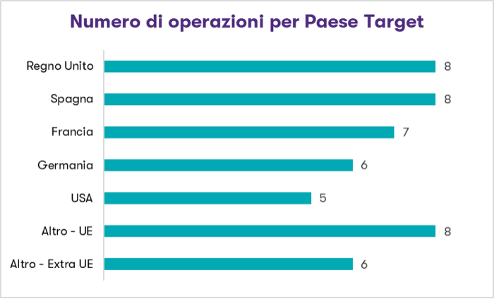 Spagna e Regno Unito condividono il podio come Paesi con il maggior numero di operazioni di M&A con 8 deal ciascuno