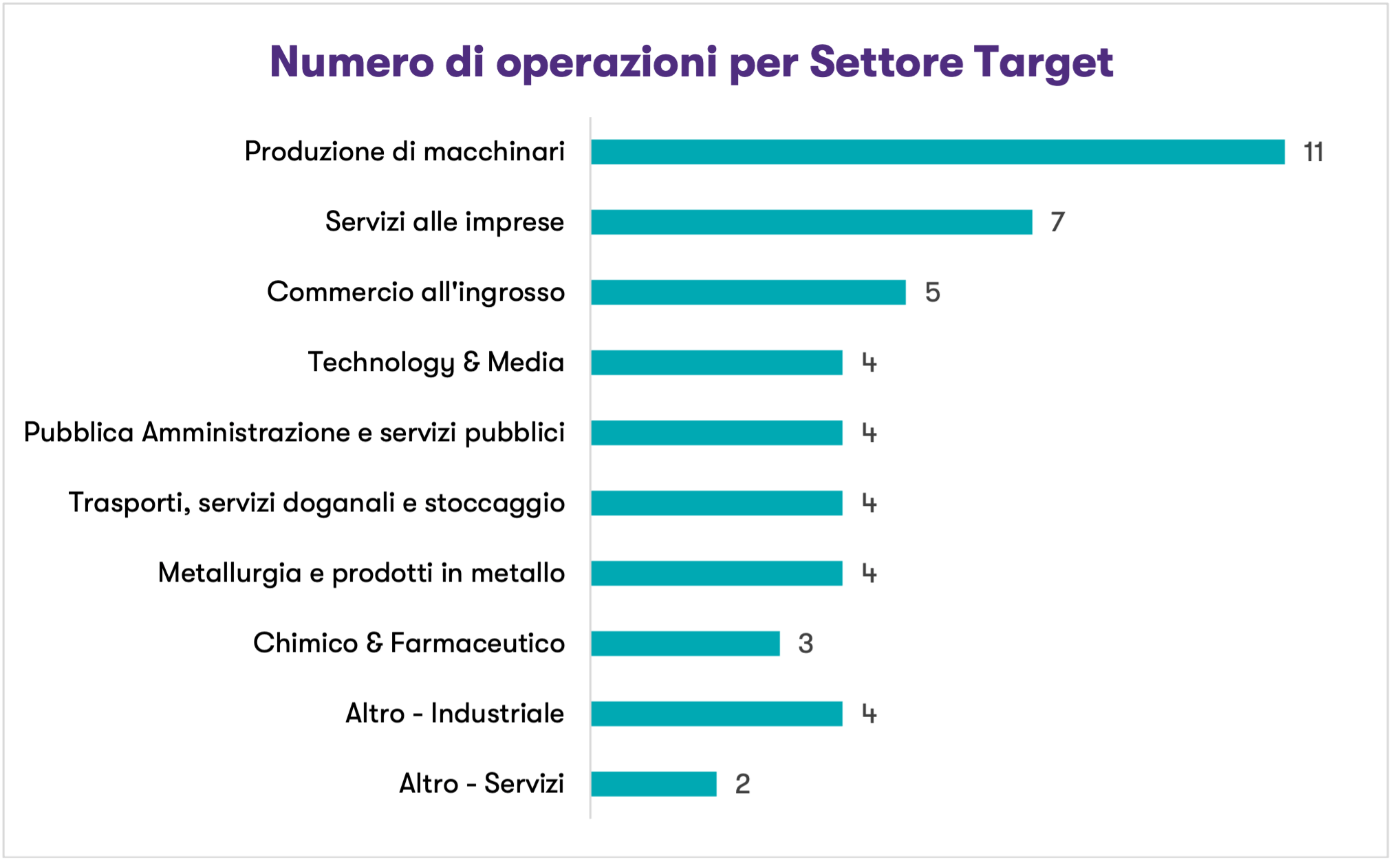 Il settore trainante è quello dei macchinari con un totale di 11 operazioni nel 2024