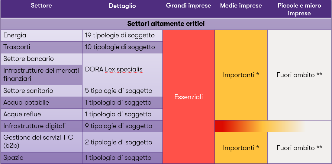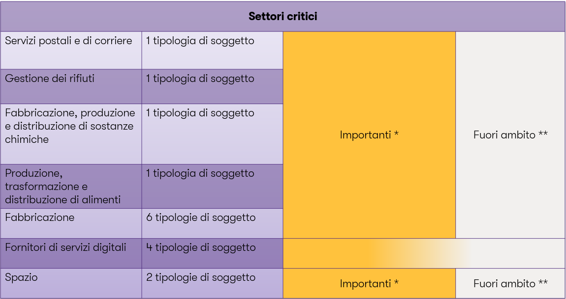 Figura 1 – Suddivisione dei settori altamente critici in entità essenziali e importanti.[1]