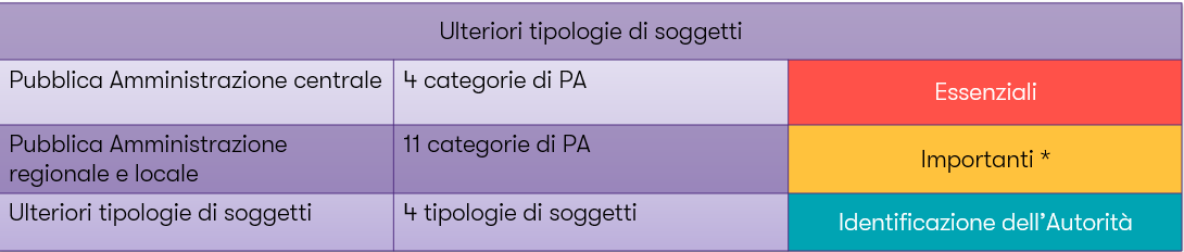 Figura 3 – Suddivisione di ulteriori tipologie di soggetti in entità essenziali e importanti.[3]