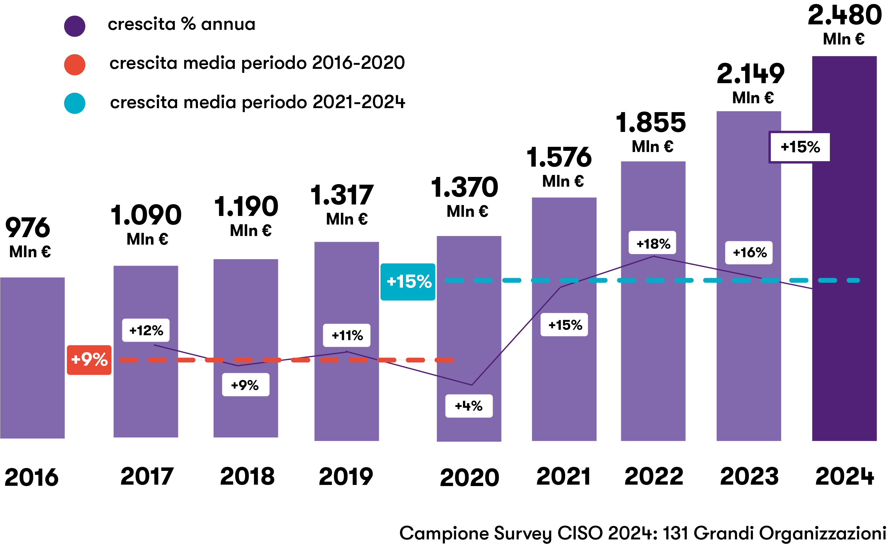 [3] Osservatorio Cybersecurity & Data Protection – Politecnico di Milano, Il mercato della cybersecurity in Italia: cresce del 15% nel 2024, 2024.