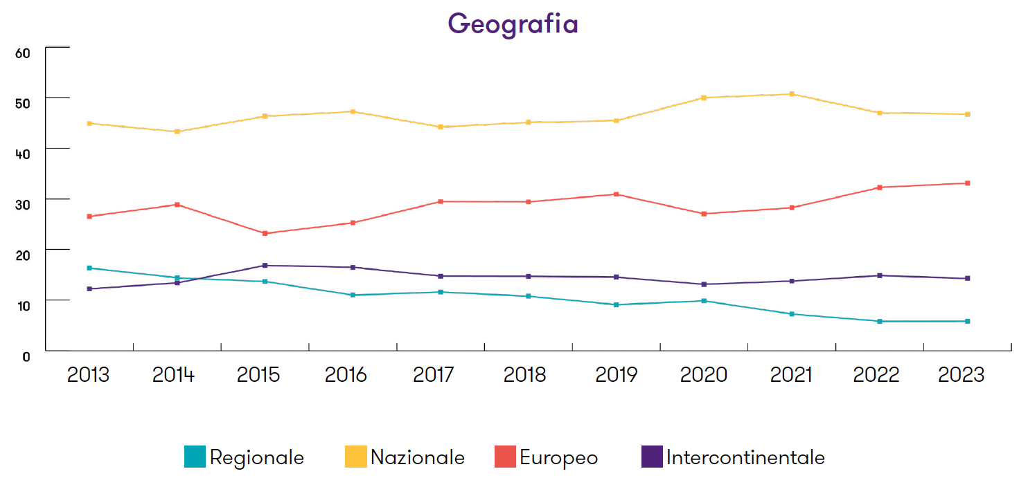 I fondi di private equity stanno progressivamente spostando la loro attenzione verso una diversificazione su scala nazionale e internazionale, abbandonando un focus strettamente regionale. Tale decisione è guidata da una serie di motivazioni strategiche e economiche. La diversificazione verso un ambito geografico più ampio consente, innanzitutto, di mitigare i rischi associati ai mercati locali specifici, offrendo una maggiore resilienza agli eventi che possono influenzare un'unica regione. Durante il decennio si è assistito ad una globalizzazione delle informazioni e delle tecnologie che hanno permesso molti investimenti di riuscire ad accrescere il valore e la competitività delle aziende all’interno del portafoglio di investimento. Inoltre, nel corso degli anni gli investimenti hanno fatto sì che le piccole PMI italiane siano cresciute adottando un’ottica internazionale e trasformandosi in piccole multinazionali.